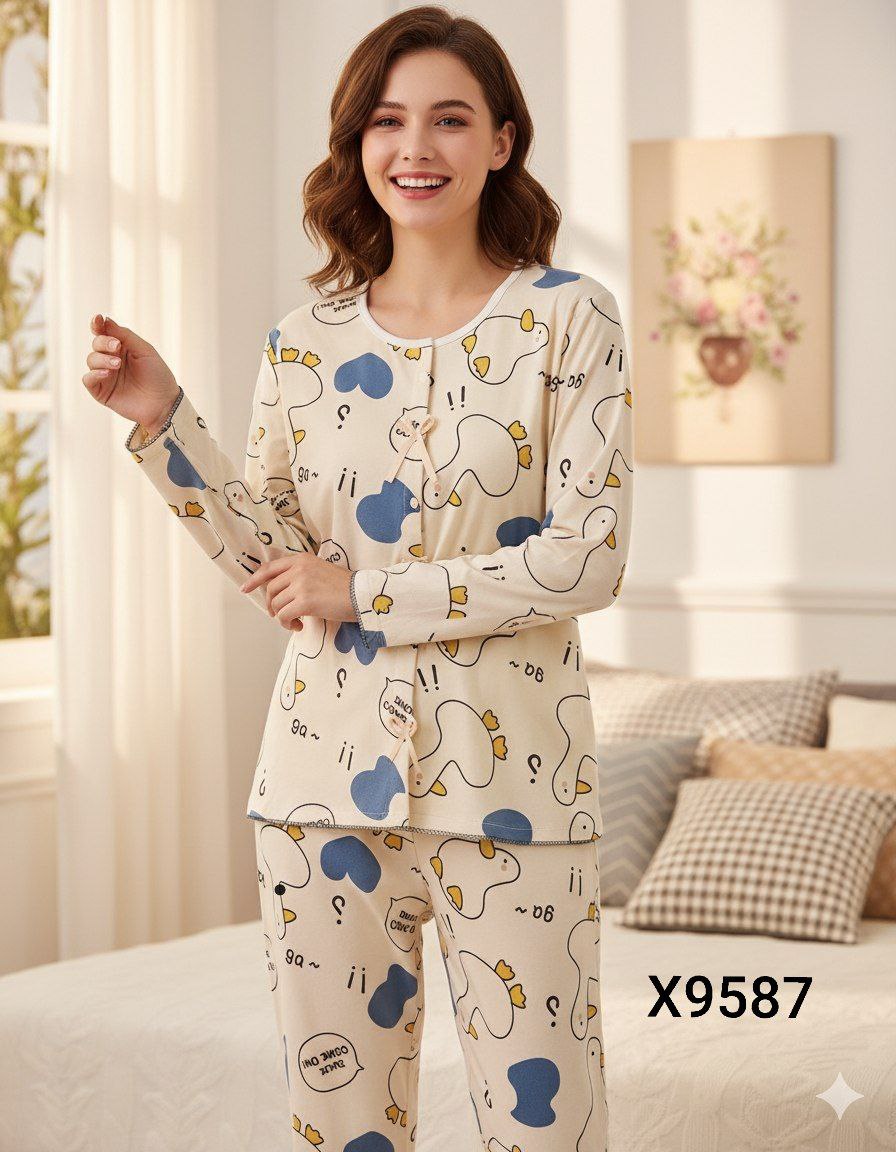 الموديل .. بجامه بطوط💗 المقاس... وان سايز التلبيس .....من50ك ل80ك 😎 الخامه .. فايبر مكستر مبطن تحفه 💯💯 💛 السعر:150جمله وقطاعي واللي يلحق يلحقx9587
