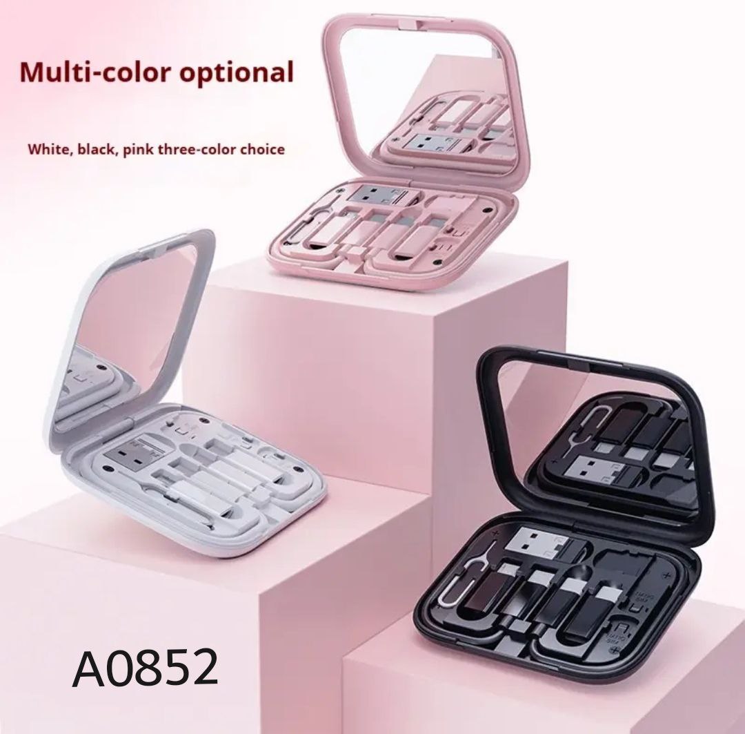 علبه بها جميع الكبلات ايفون TYPE-C مايكرو و كبل TYPE-C...TYPE-C و دبوس بيت الشريحه و ريدير و العلبه بها مرايه و استند