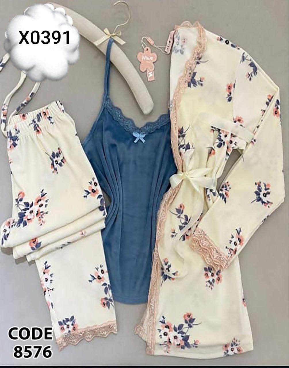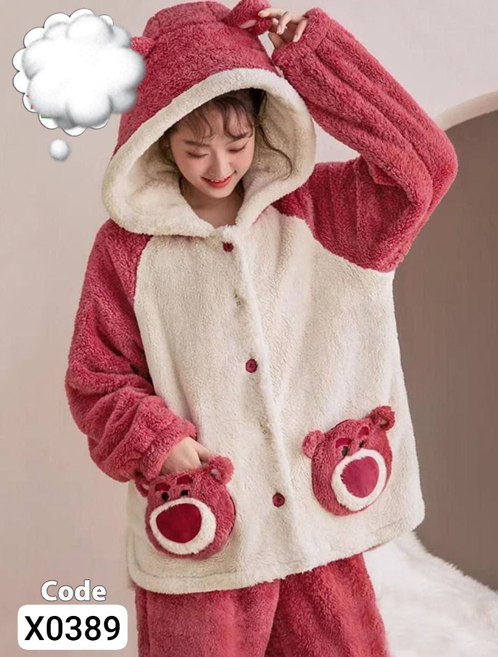 احدث الموديلات الشتوي الترند 😍😍 الموديل .. بجامه دب زراير 🌸💗 المقاس... فري سايز التلبيس ..... من 50ك ل 75ك 😎 الخامه .. فرو وشين تطريز بطانيه 3قطع 💛 السعر:300جمله وقطاعي واللي يلحق يلحق Code x0389
