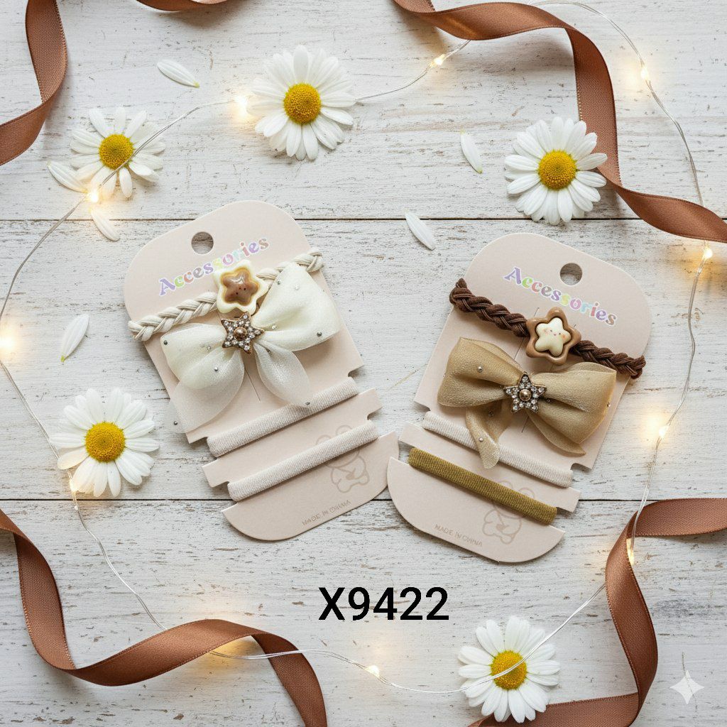 كارت عبارة عن 2توكه شعر استيك+ كلبس نجوم+ استيك ضفيرة رابر الوان اشكال بتصميم جميل للبنات والنساء (4قطع في الكارت واحدة) . الوان متعددة🇨🇳 مستورد 100٪ X9422