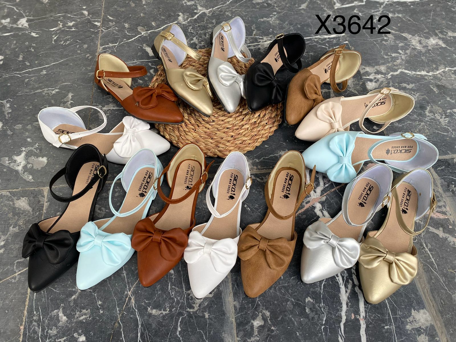 (ثري) جودمرنج حريمي صاروخ فيونكه جلد فلات أصلي لوكس كود X3642 المقاس من 37الي41
