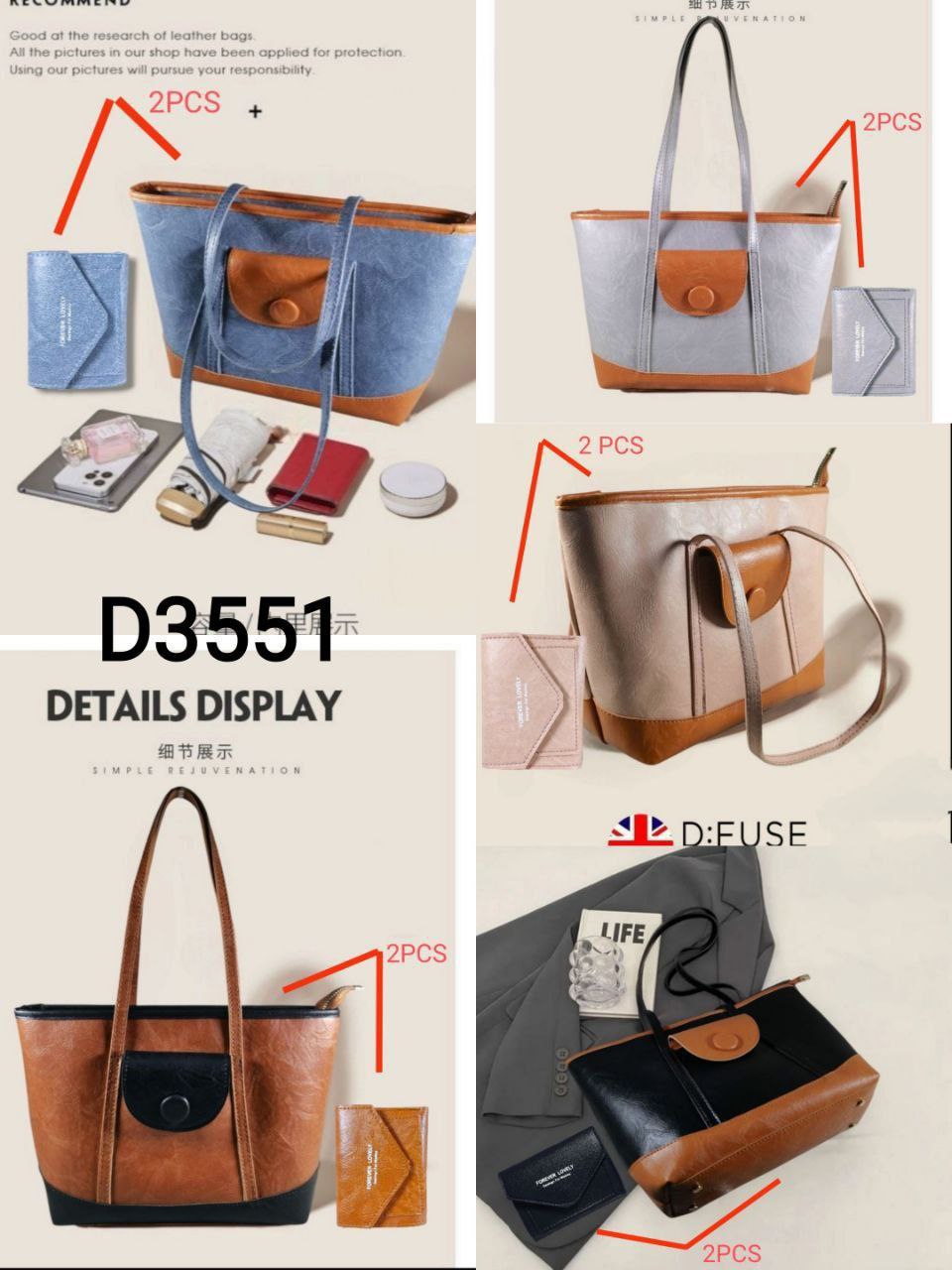 شنطه 2 سوسته كتف و كروس جلد مستورد مقاس 21*30 F3462