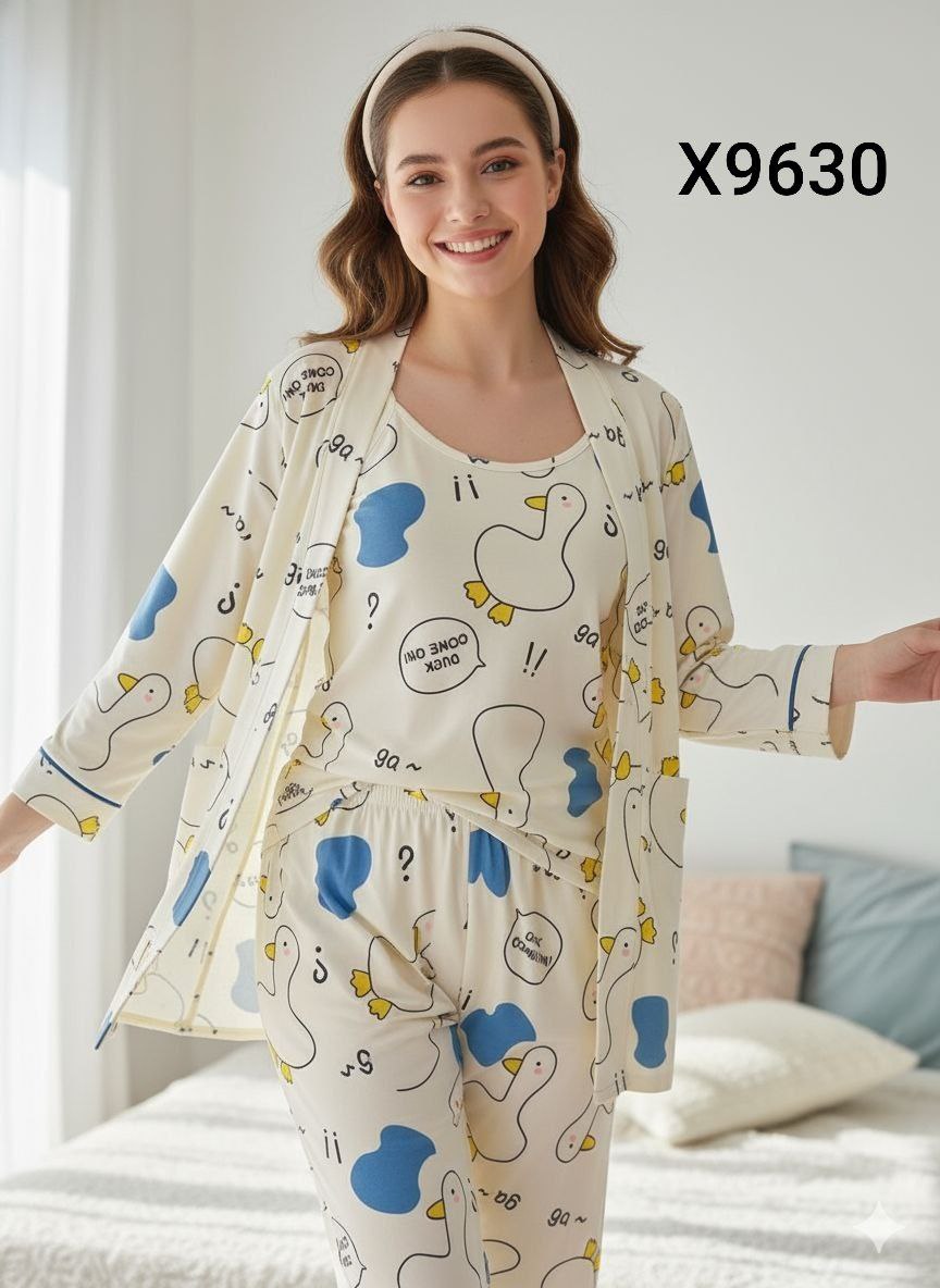 الموديل .. بجامه 3ثطع بالروب قصير 💗 المقاس... فري سايز التلبيس .....من50ك ل 80ك 😎 الخامه .. قطن مكستر ناعم مبطن وبره 💯💯 💛 السعر:180جمله وقطاعي واللي يلحق يلحق Code x9630