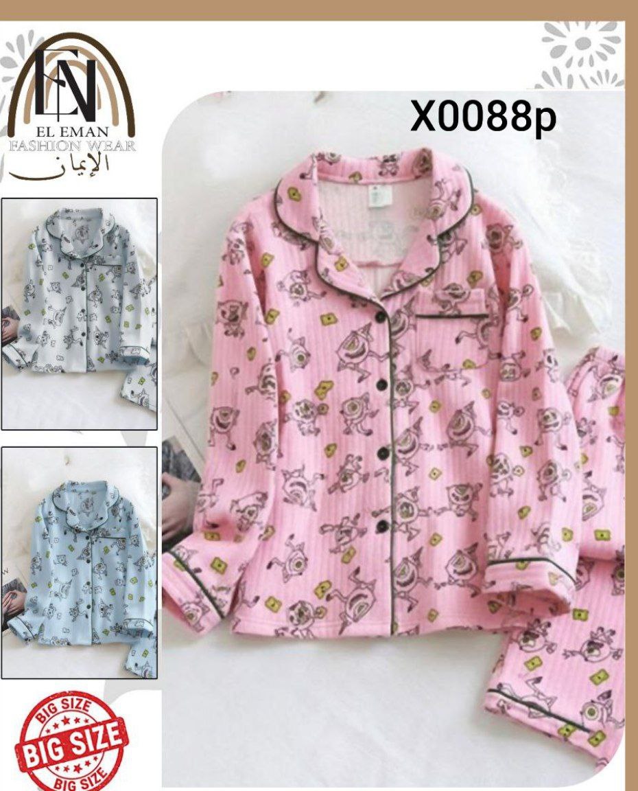 الموديل ... بجامه زراير. بعبع 💗 المقاس... بيج سايز التلبيس ....من 75ك ل90ك 😎 الخامه .. قطيفه مضلع مستورد مبطن تقيييل 🌸🌸 السعر...360جمله و قطاعي Code x0088