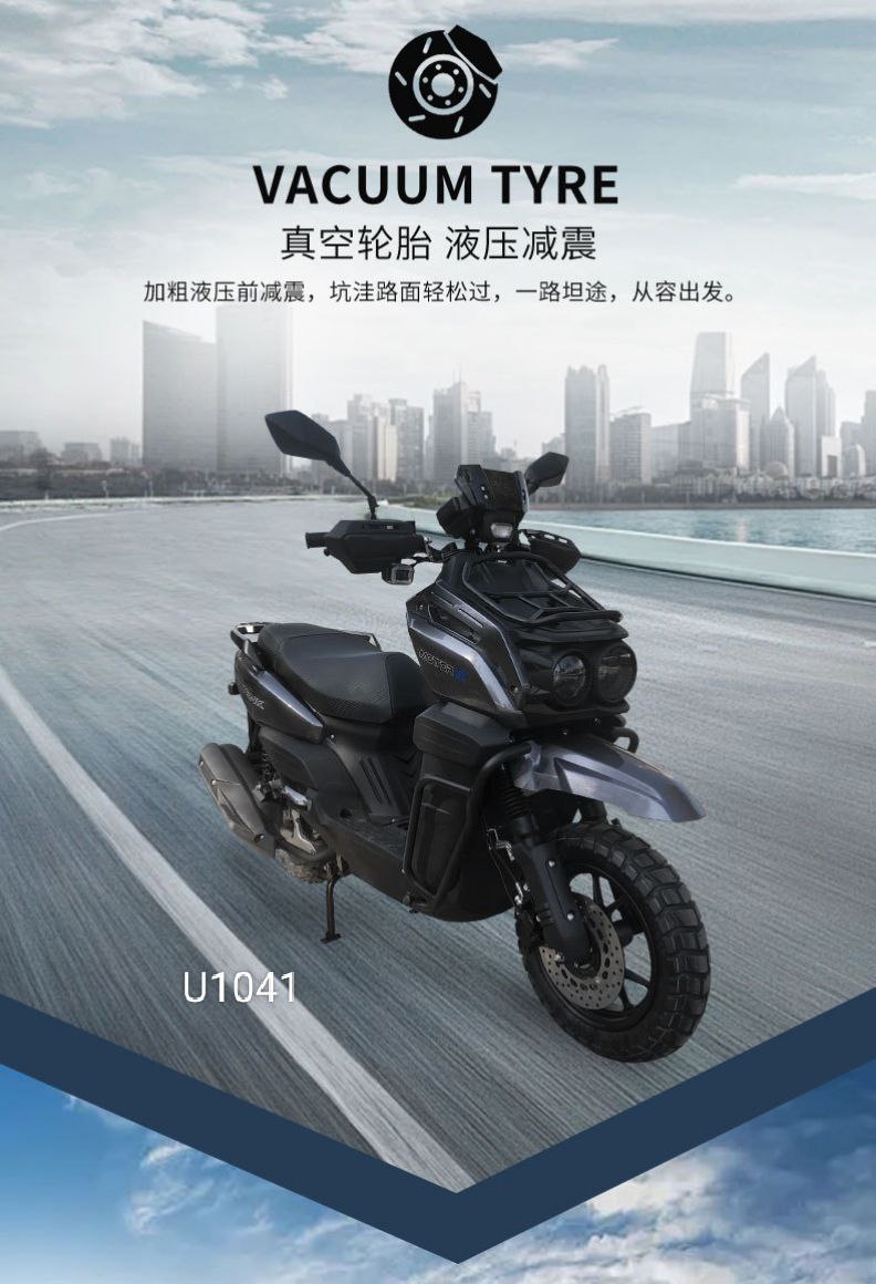 الأبعاد: (الطول/العرض/الارتفاع): ١٨٨٠*٧٣٠*١١٠٠ مم المحرك: ١٠٠٠ واط، ١٠ بوصات، السرعة القصوى ٤٥-٧٠ كم/ساعة البطارية: رصاص حمضي/ليثيوم (٤٨ فولت/٦٠ فولت/٧٢ فولت) الفرامل: فرامل قرصية أمامية/فرامل قرصية خلفية (٢٢٠ مم أمامية/١٨٠ مم خلفية) ممتصات الصدمات: ممتصات صدمات هيدروليكية أمامية ٣٠ مم/ممتصات صدمات زنبركية خلفية ٢٩٠ مم الإطارات: إطارات بدون أنابيب بعرض ٣.٠-١٠ مم أمامية وخلفية التروس: ناقل حركة ١/٢/٣ سرعات/وضعية ركن P الجنوط: عجلات حديدية أمامية وخلفية ١٠ بوصات الأجهزة: لوحة عدادات LED عالية الدق