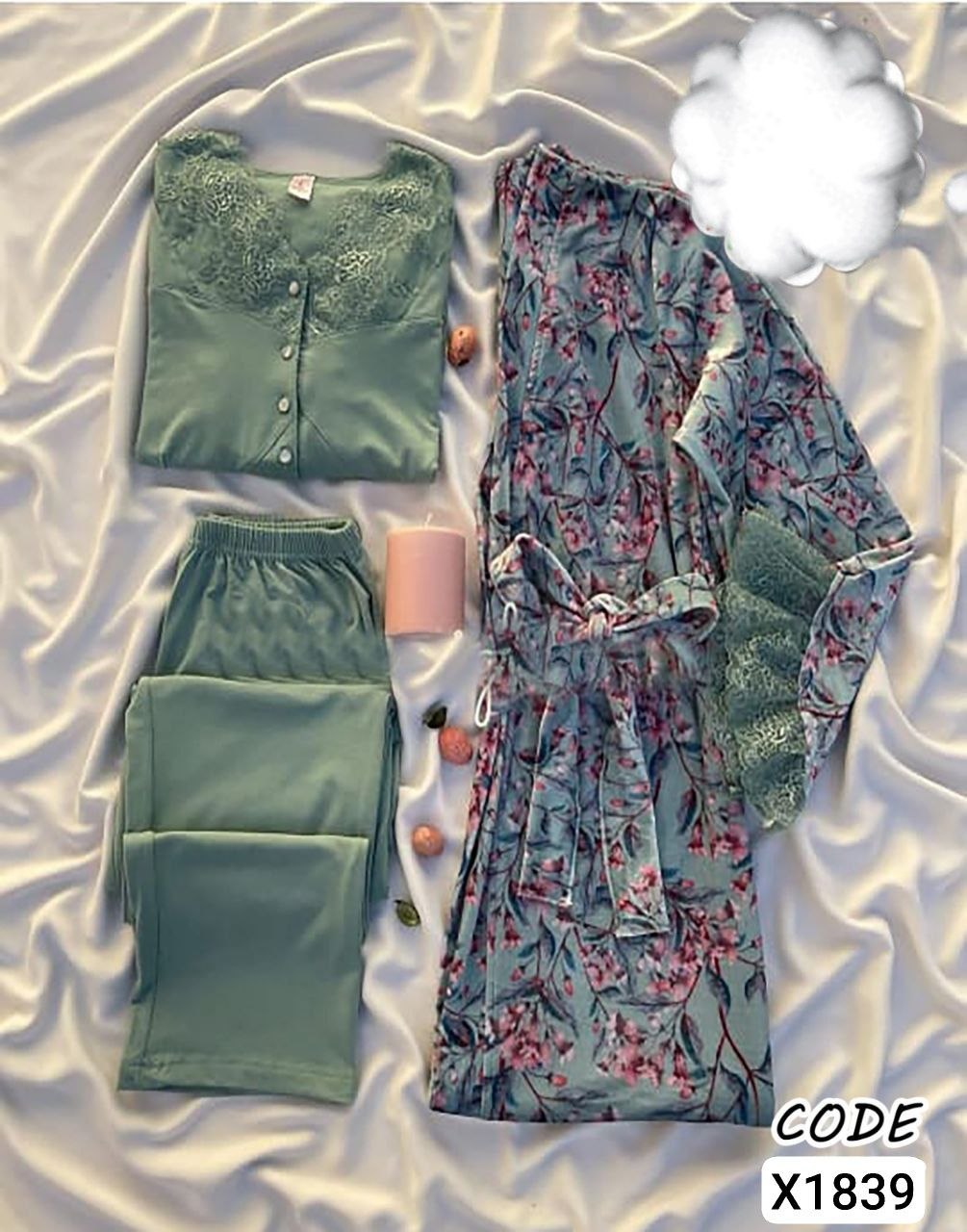 .اقوي كولكش صيفي 😍🌹 الترند عندنا وبسسس 💯💯💝 الموديل .. بجامه فلوري دانتيل 3قطع بالروب 🌸🌸 #المقاااس..فري سايز 💃💯💃 #تلبيس من50ك ل 75ك 😍😍 #الخاااامه .قطن #السعر ...380 جمله وقطاعي (تقفيل_و_فينش_عالمى_و_اعلى_جوده) Cod. X1839👈